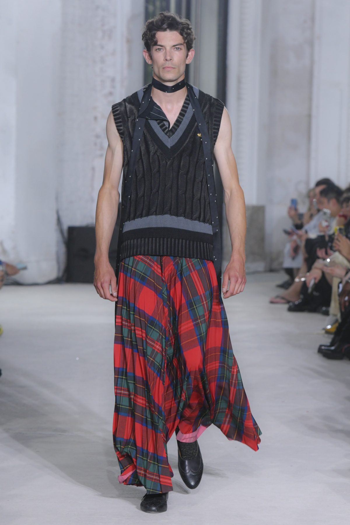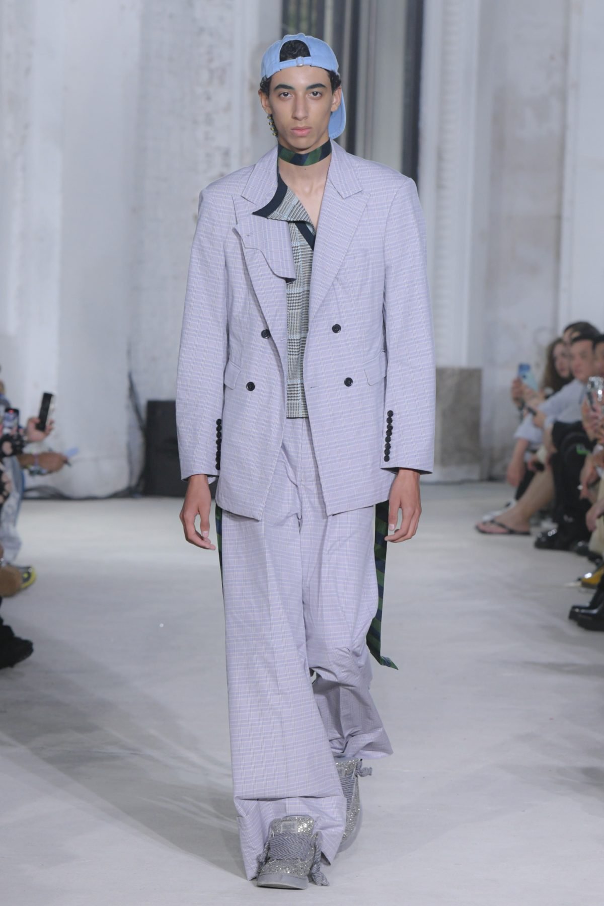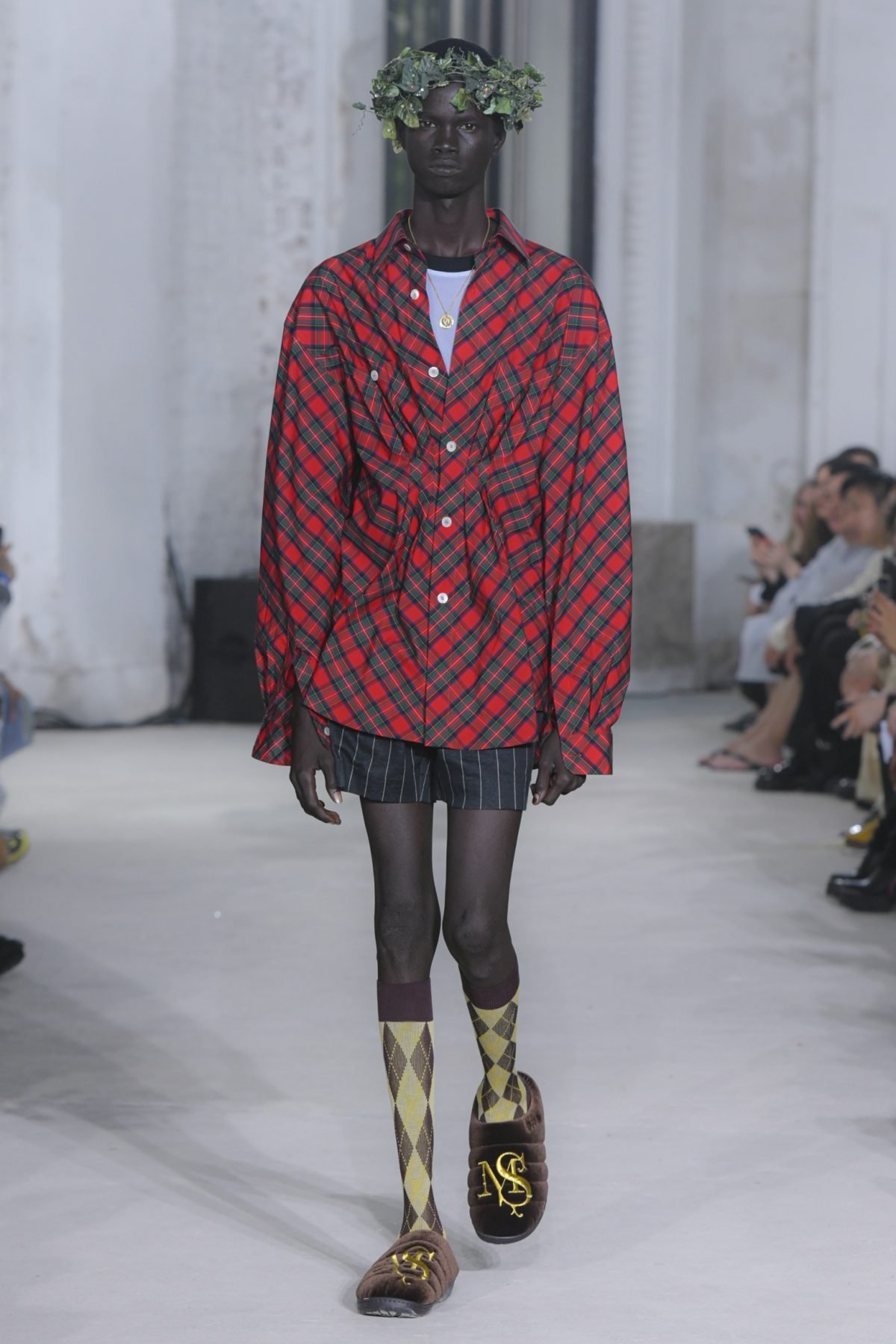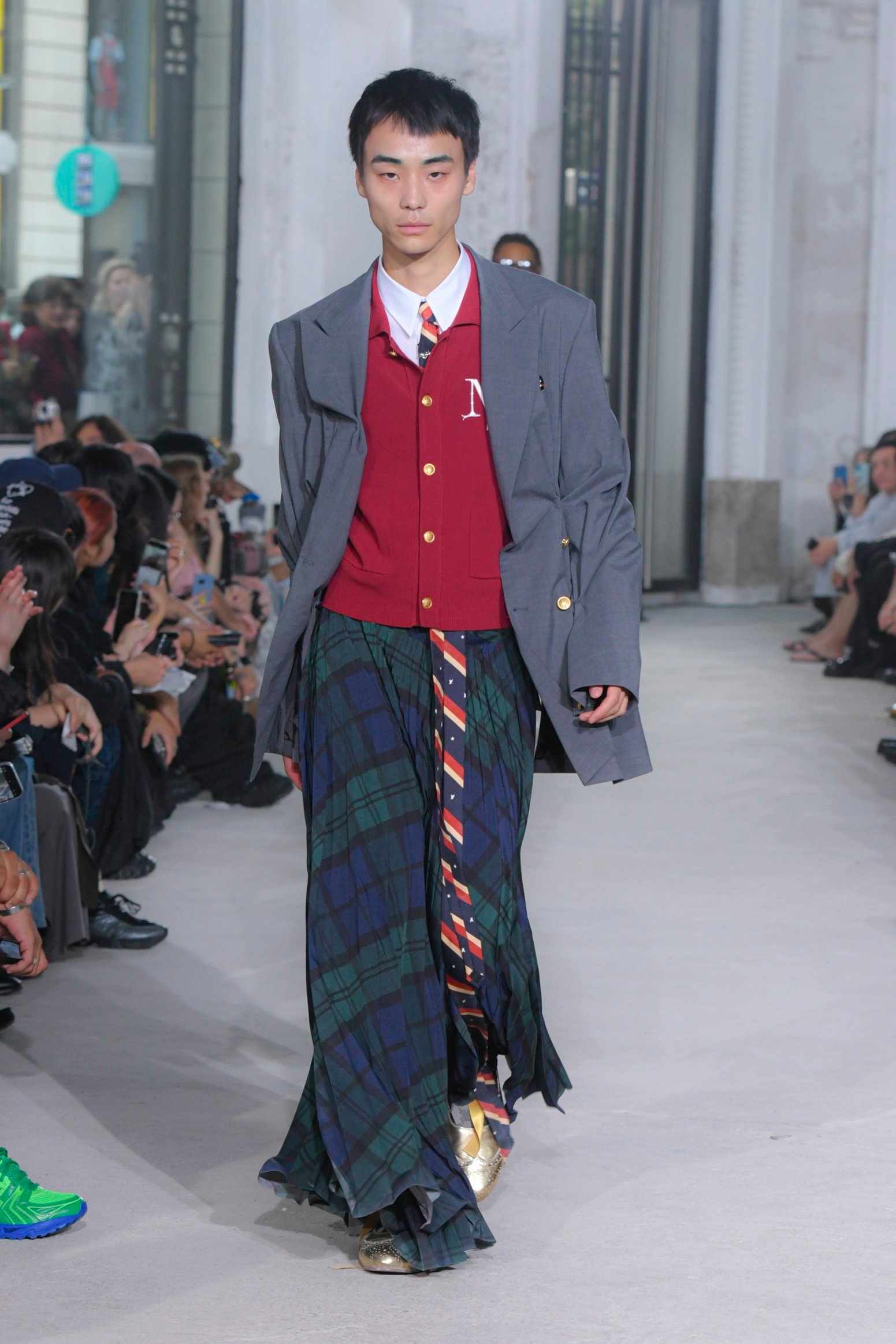 The imagination that questions the existing can weave different stories. The Spring/Summer 2025 collection unveiled on Haussmann Boulevard in Paris is filled with straightforward reinterpretations that directly confront traditional and Ivy styles. With his usual light touch, the designer turned his gaze to the ‘style’ like mature ivy and the items and outfits that symbolise them. He unraveled navy blazers, marine stripes, and argyle patterns, not only slicing through clichés but also technically transforming forms with smocking and deforming classics with accordion pleats, liberating concepts effortlessly. This playful collection, shedding the abstraction of style, can be seen as a meeting of familiarity and artistic dressing. Shinpei truly envisions the beginning of another tale.