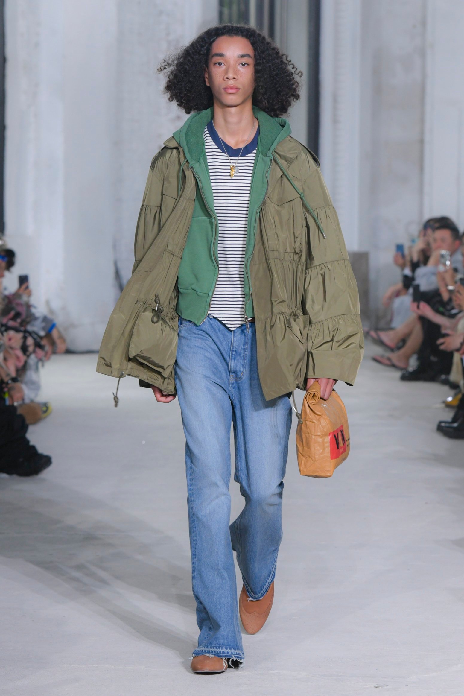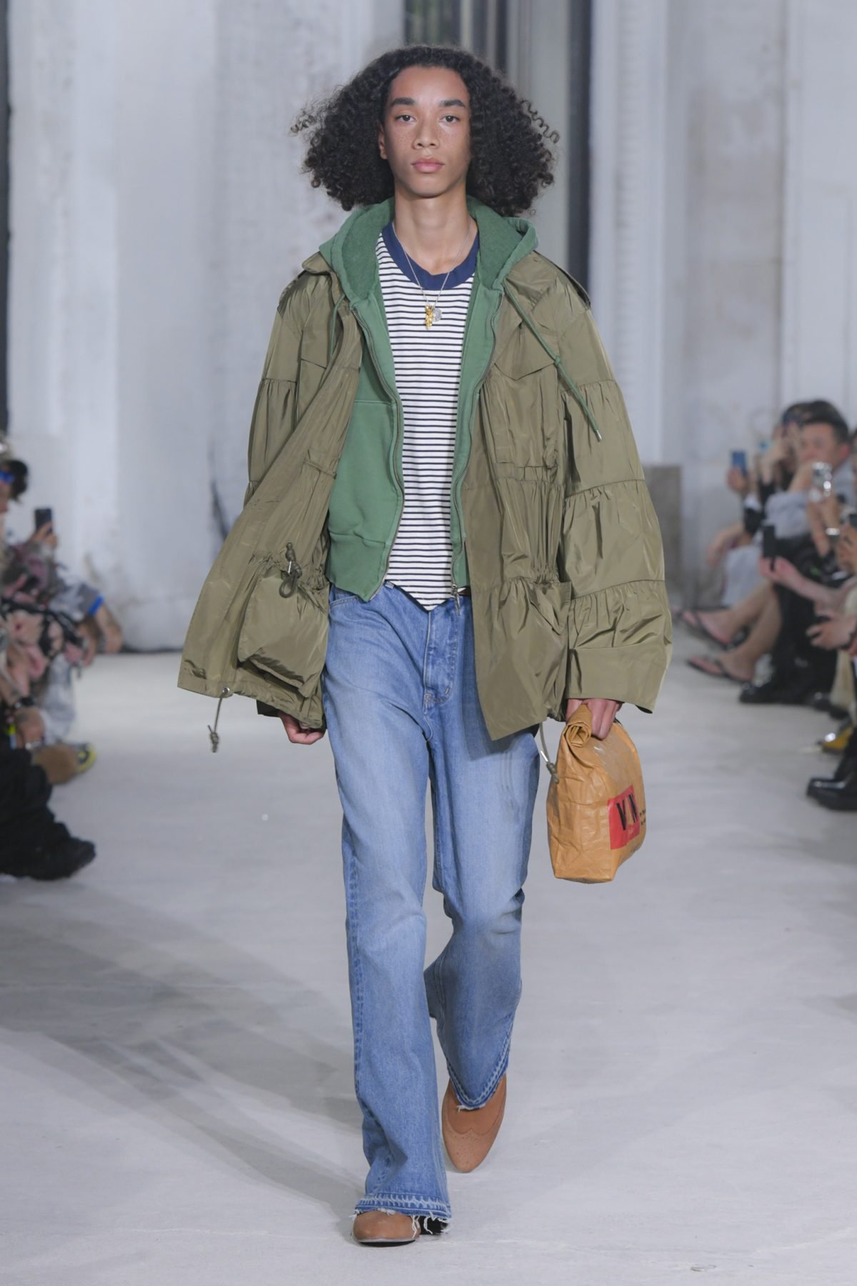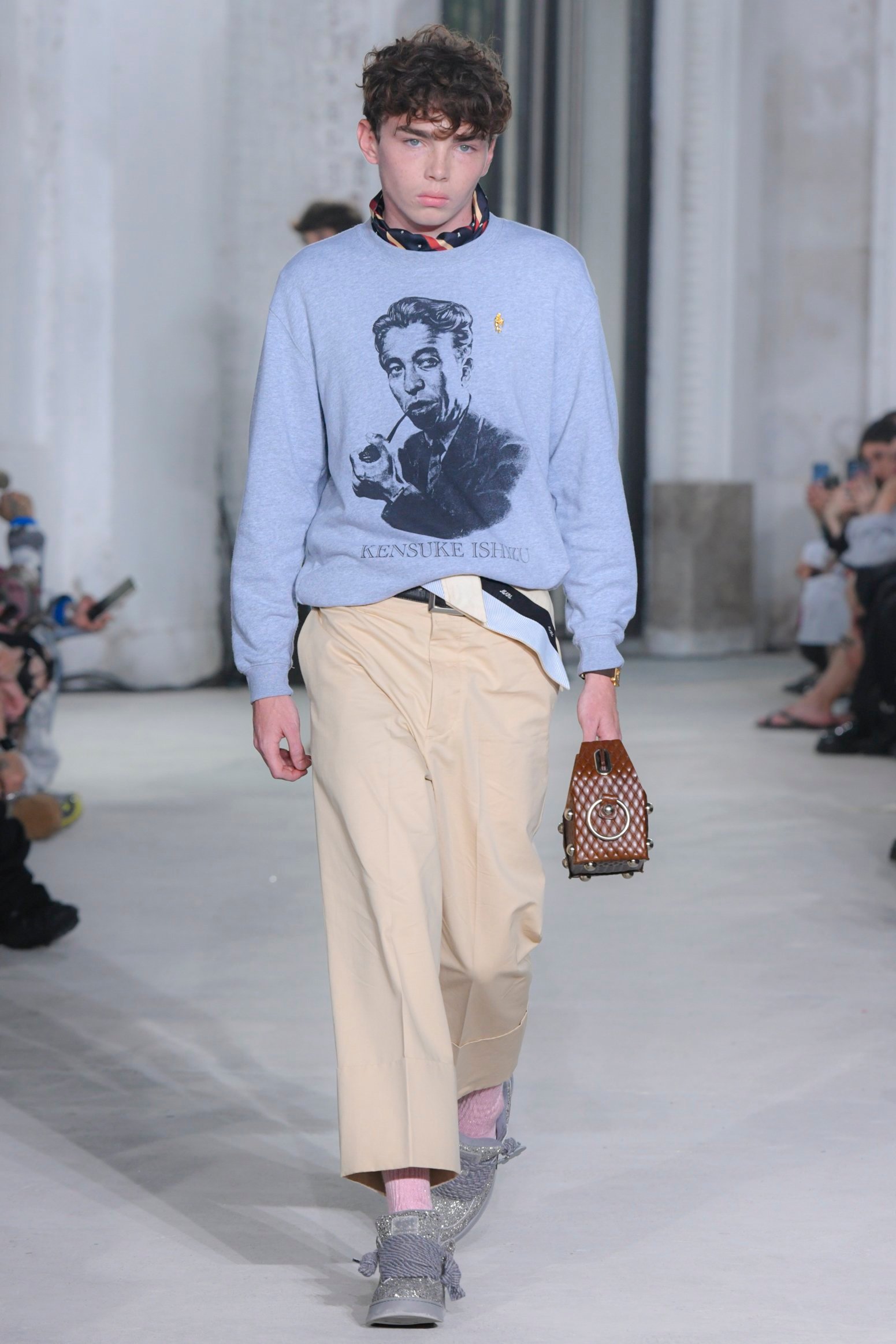 Collaborations, for M A S U, represent a contemporary approach that unleashes his vision into a broader territory. Since the 1950s, incorporating American culture and permeating Japan with American traditional style, the VAN JAC by Kensuke Ishizu, who led Japanese fashion trends, we paid homage to Ishizu by creating a sweatshirt printed with his portrait in the style of a Beethoven sweatshirt (Great Man Sweatshirt), not only with a paper bag-style clutch but also revolutionizing Japanese fashion and paving the way for the future. Following the 24FW collection, VERDY depicts MASU BOYS CLUB lettering and emblem, along with ivy graphics wrapping around the arm, while memorial pants are adorned with words related to VERDY and designer John, a friend who connected them.