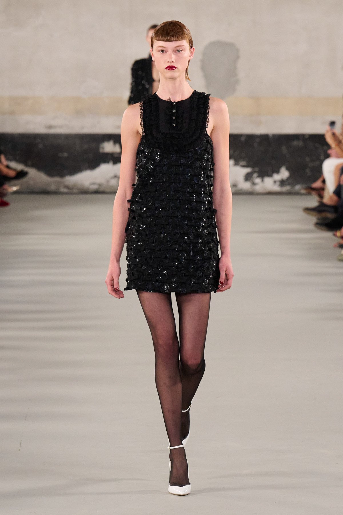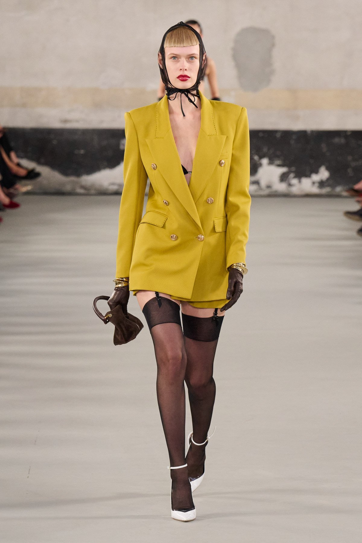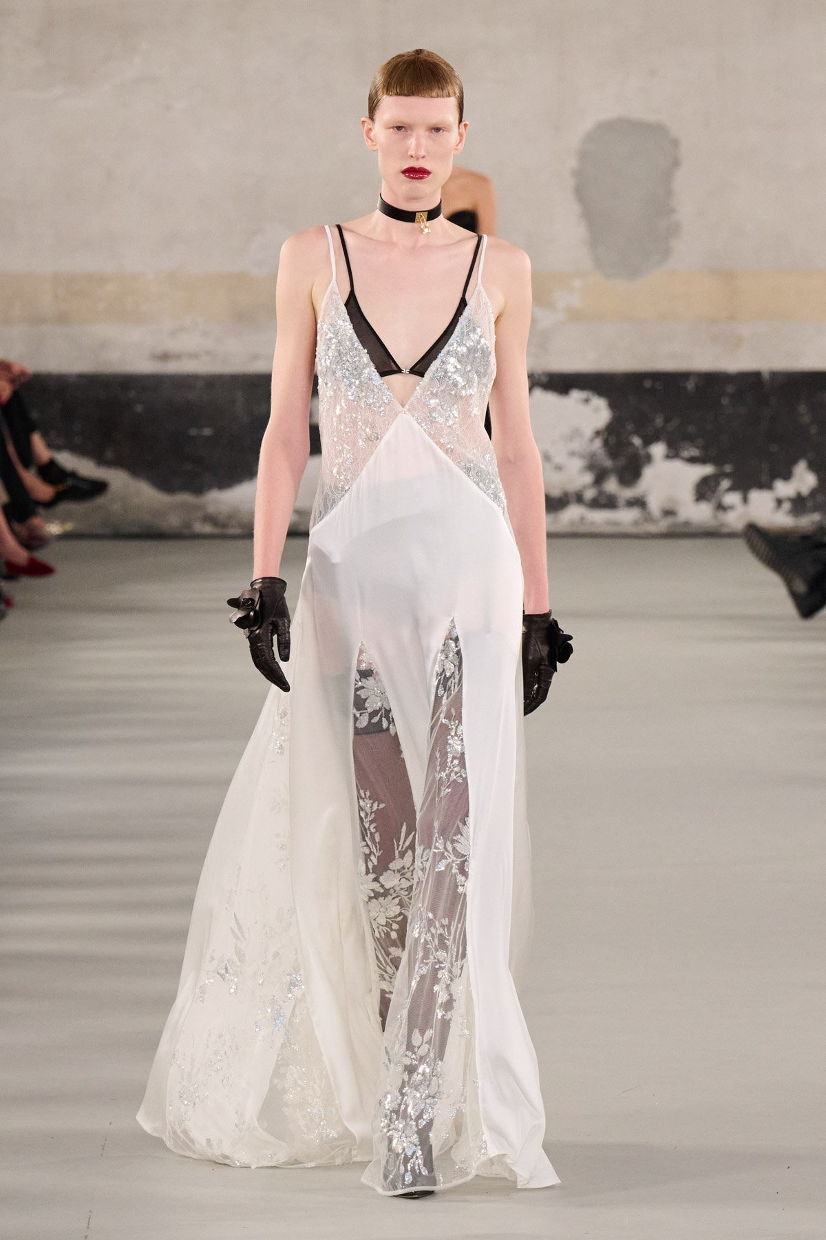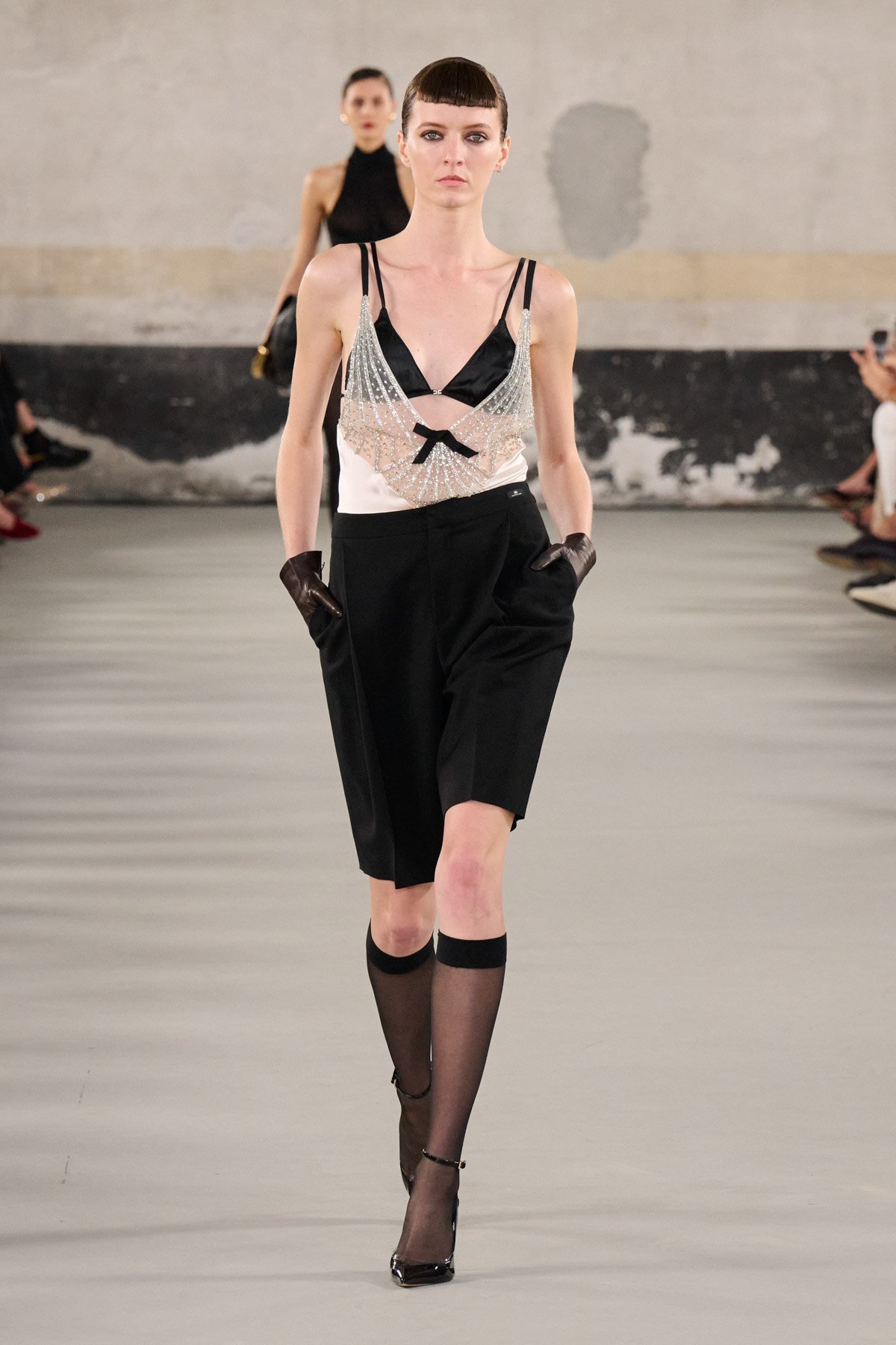 Le giacche strutturate e i pantaloni maschili convivono armoniosamente con tessuti romantici come il pizzo, e dettagli come fiocchi e fiori. La giacca è la protagonista assoluta, rappresentando la perfetta sintesi della collezione. Abbinata a pantaloni dal taglio maschile o indossata sopra abiti iper-femminili, definiti da dettagli provenienti dalla corsetteria e dalla lingerie, incarna il dualismo della collezione. I tessuti maschili sono accostati a materiali delicati come tulle e organza di seta.