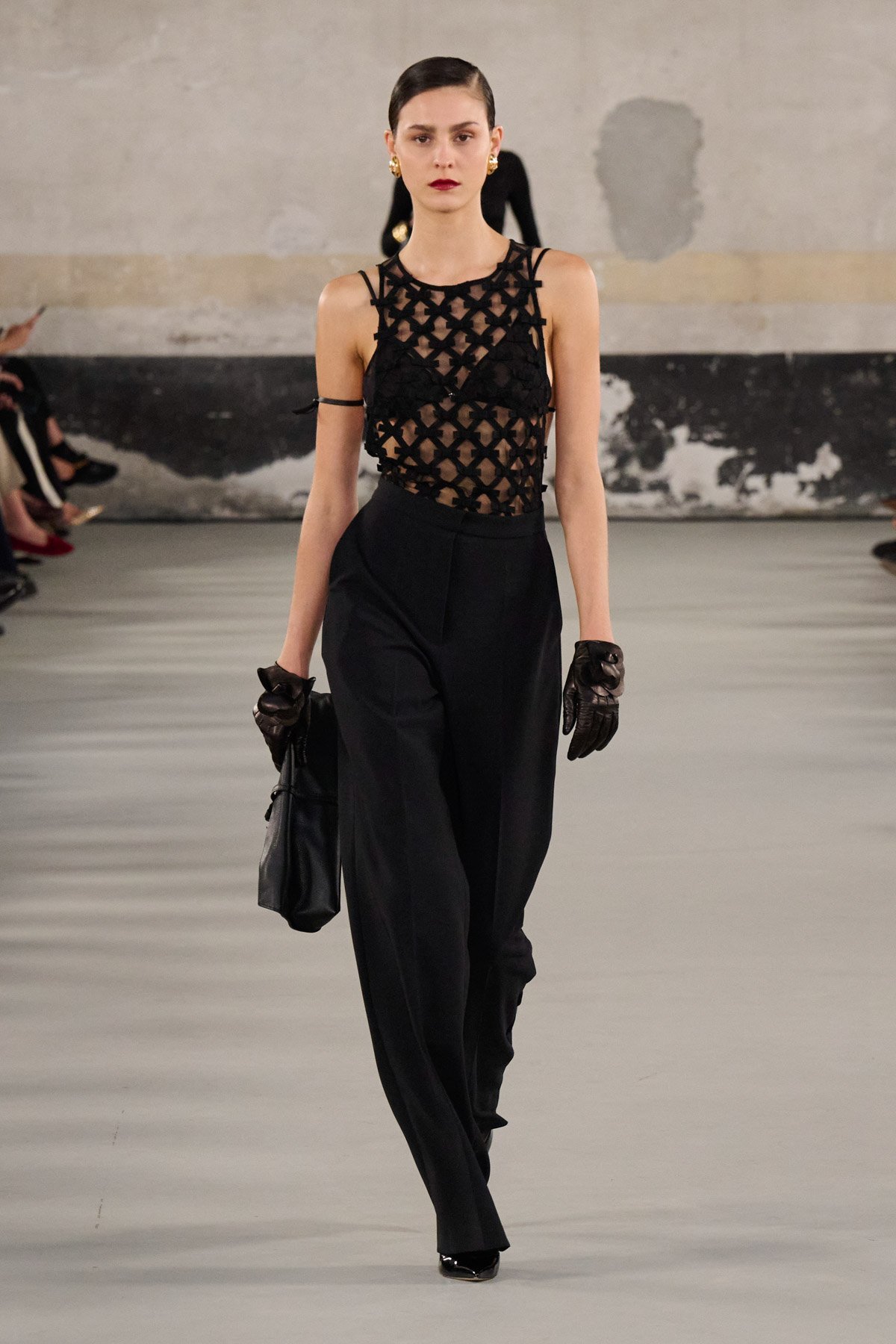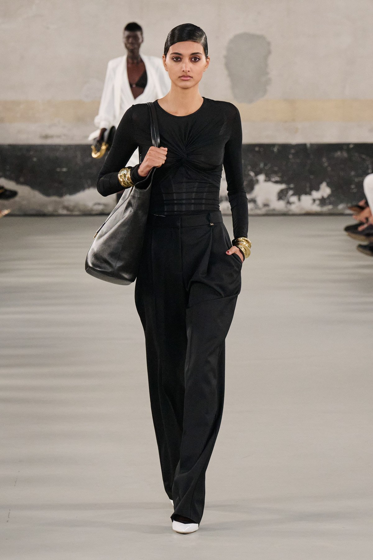 A completare il look tacchi vertiginosi, a punta, in vernice e borse dalle linee essenziali e moderne. Morbide e versatili, sono perfette per diverse occasioni d’uso: dal giorno, su un look più maschile, alla sera soprattutto nella versione slim da portare sotto braccio.