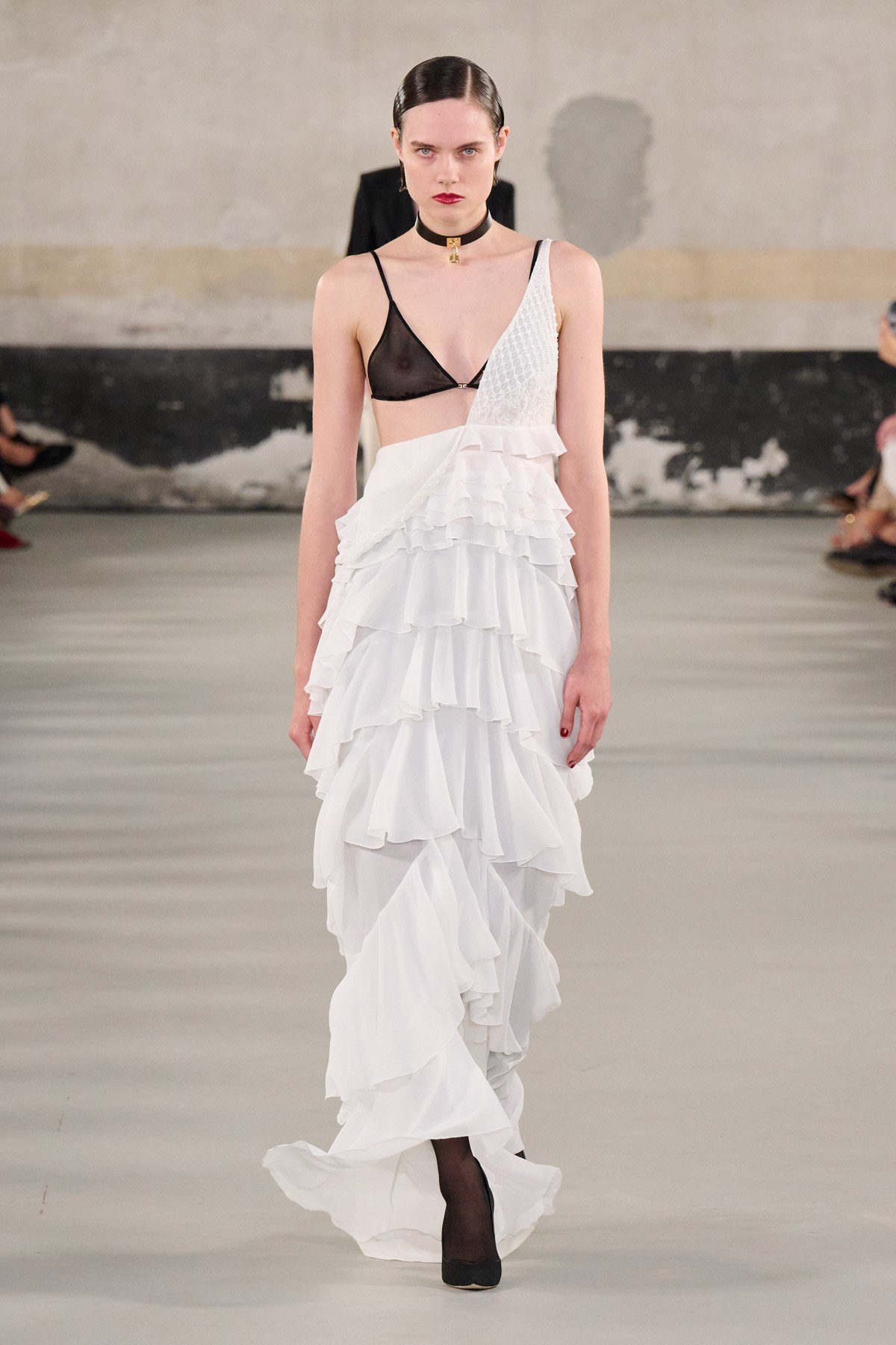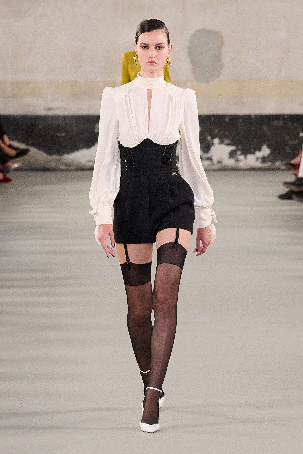 Venti passerelle, ma con una visione sempre chiara, portata avanti con dedizione e cura. In perpetua evoluzione, Elisabetta Franchi abbraccia il cambiamento, creando un legame autentico con il futuro. La collezione SS25 esplora l’energia del contrasto tra bianco e nero, tra forza e dolcezza.