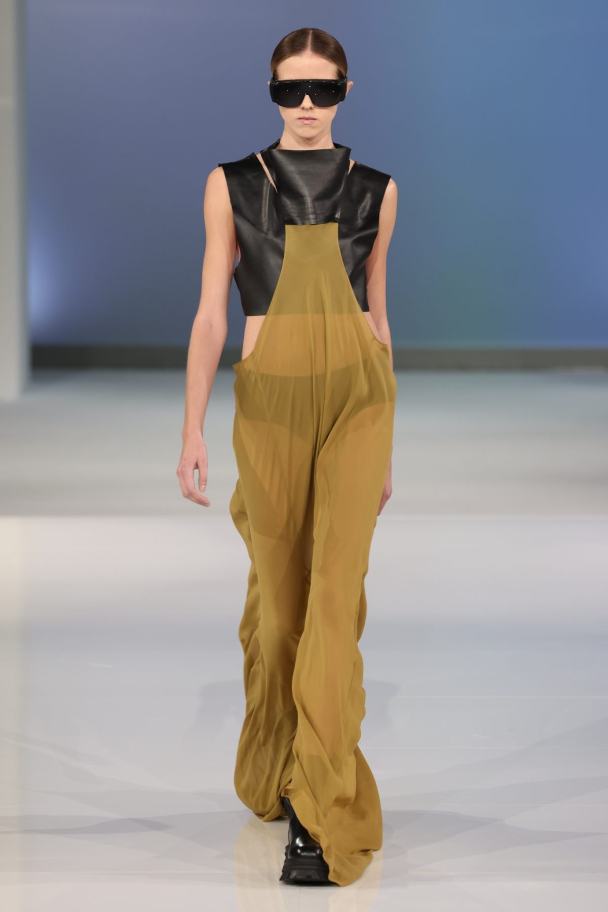 Abiti che combinano leggerezza e struttura, creano un universo in cui la forza femminile manifesta un mondo contemporaneo. Modelli strutturati, tagli precisi abbinati a una scelta di tessuti classici e non, sviluppati in una palette cromatica che enfatizza questo dualismo fra la natura e la tecnologia – colori che spaziano dal verde foresta all’oliva, pietra, carbone e nero.