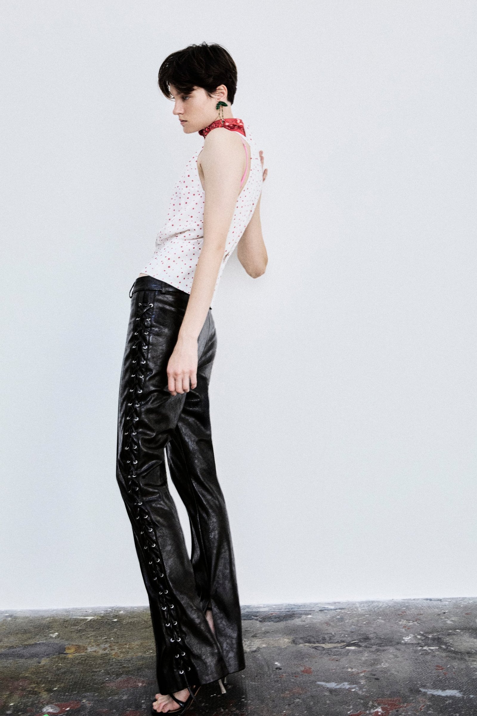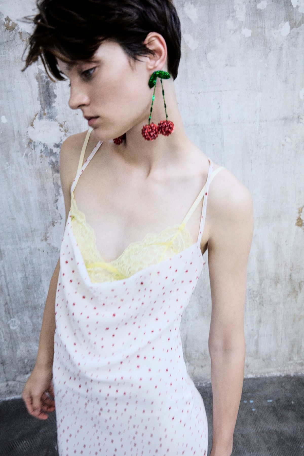 La vera novità di stagione è però la stampa: ciliegie e pois segnano il primo approccio del brand in termini grafici, diventando ossessione e fil rouge della collezione stessa. Le