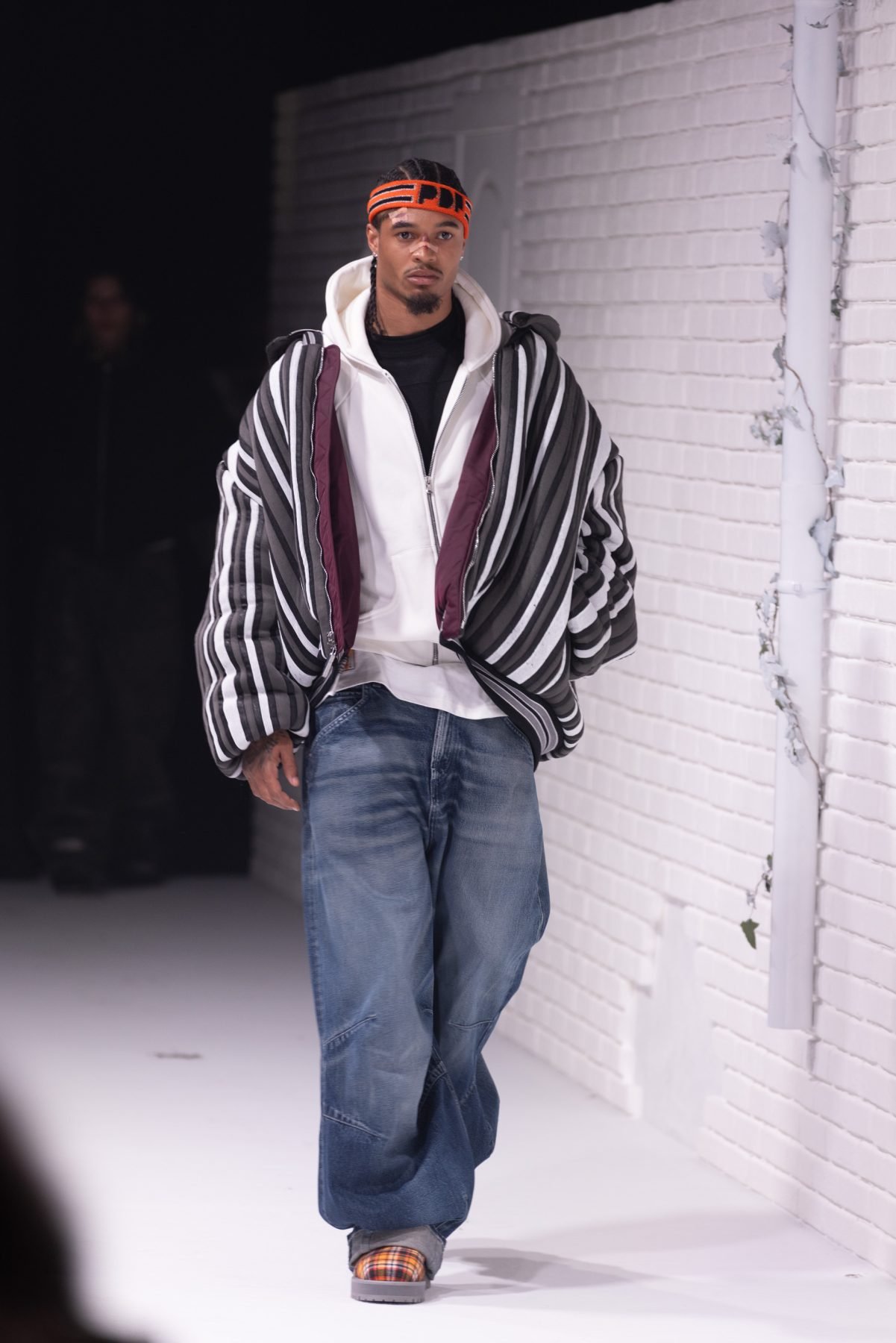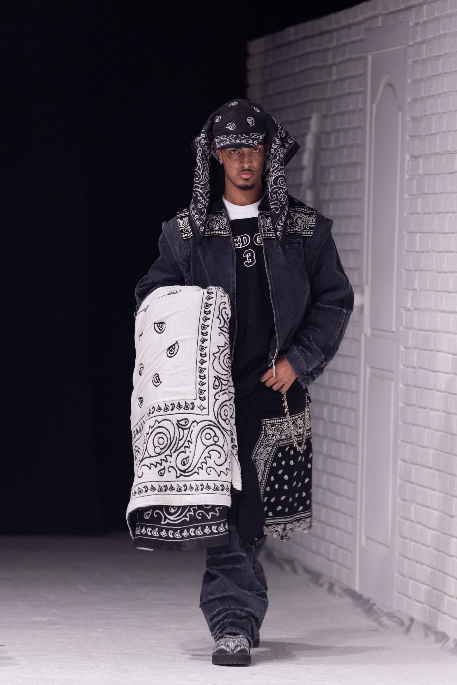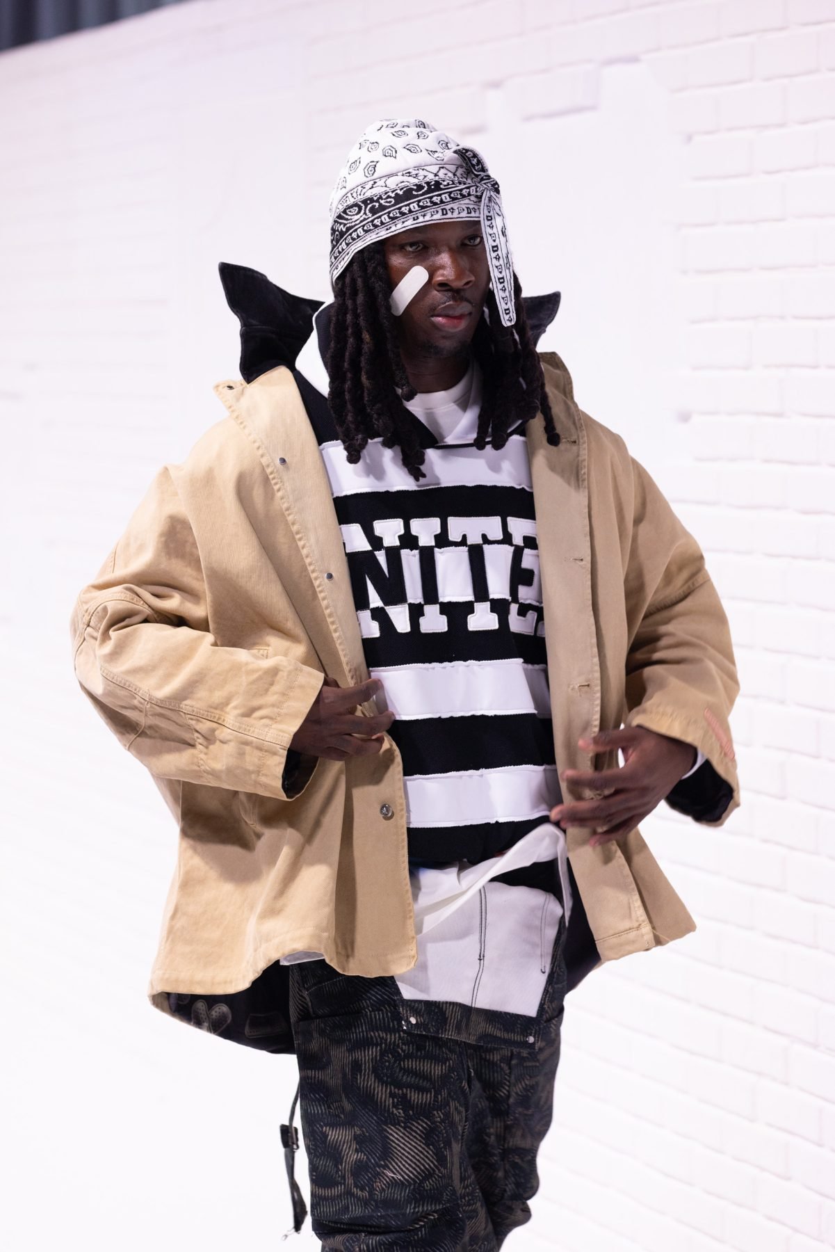 Formichetti’s commitment to community was woven into the DNA of the presentation. The runway was a melting pot of talent—models, artists, and friends of the brand, including Moise Keane, Sita Abellan, Alvin Kamara and Taylil James. Each look told a story, from graffiti-inspired prints that nodded to the visual language of 90s album covers to oversized silhouettes that recalled the sartorial swagger of Harlem in its heyday.