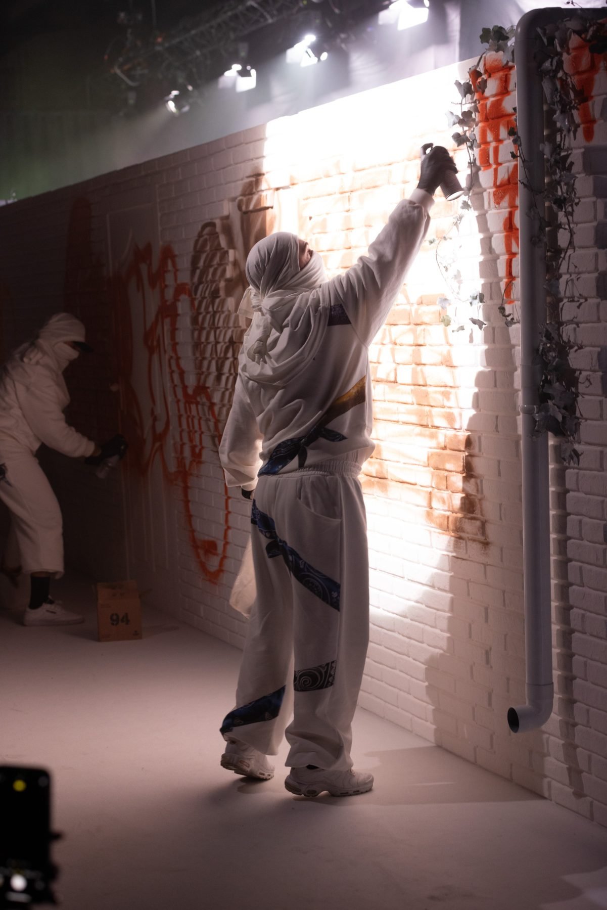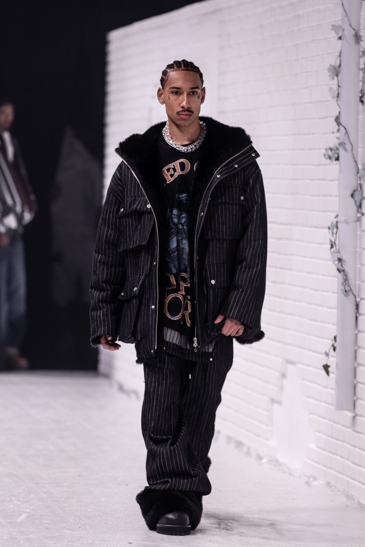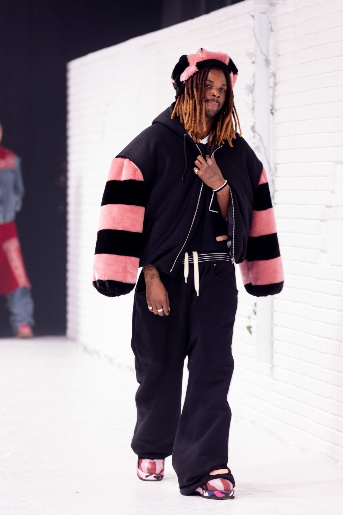 Formichetti’s commitment to community was woven into the DNA of the presentation. The runway was a melting pot of talent—models, artists, and friends of the brand, including Moise Keane, Sita Abellan, Alvin Kamara and Taylil James. Each look told a story, from graffiti-inspired prints that nodded to the visual language of 90s album covers to oversized silhouettes that recalled the sartorial swagger of Harlem in its heyday.