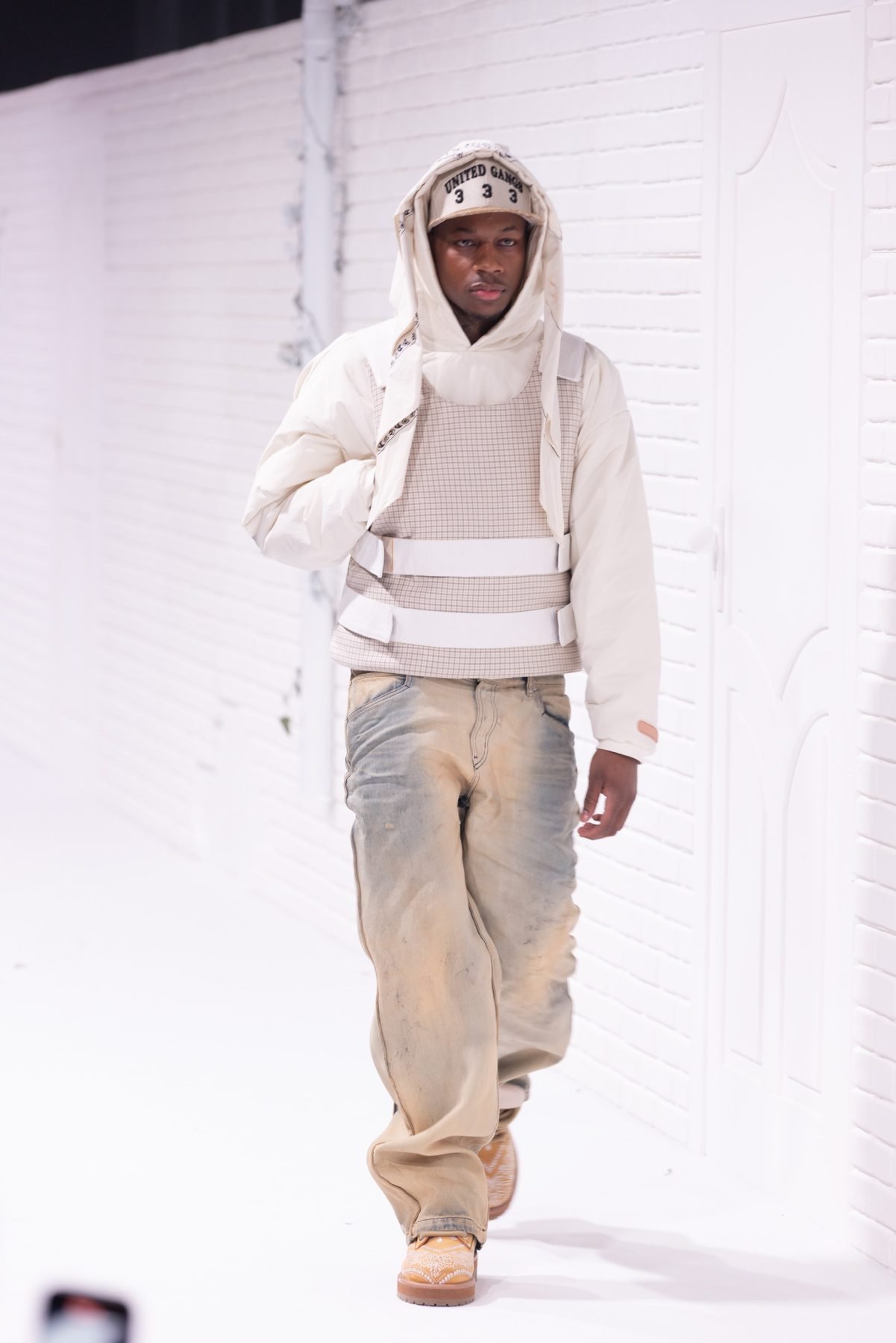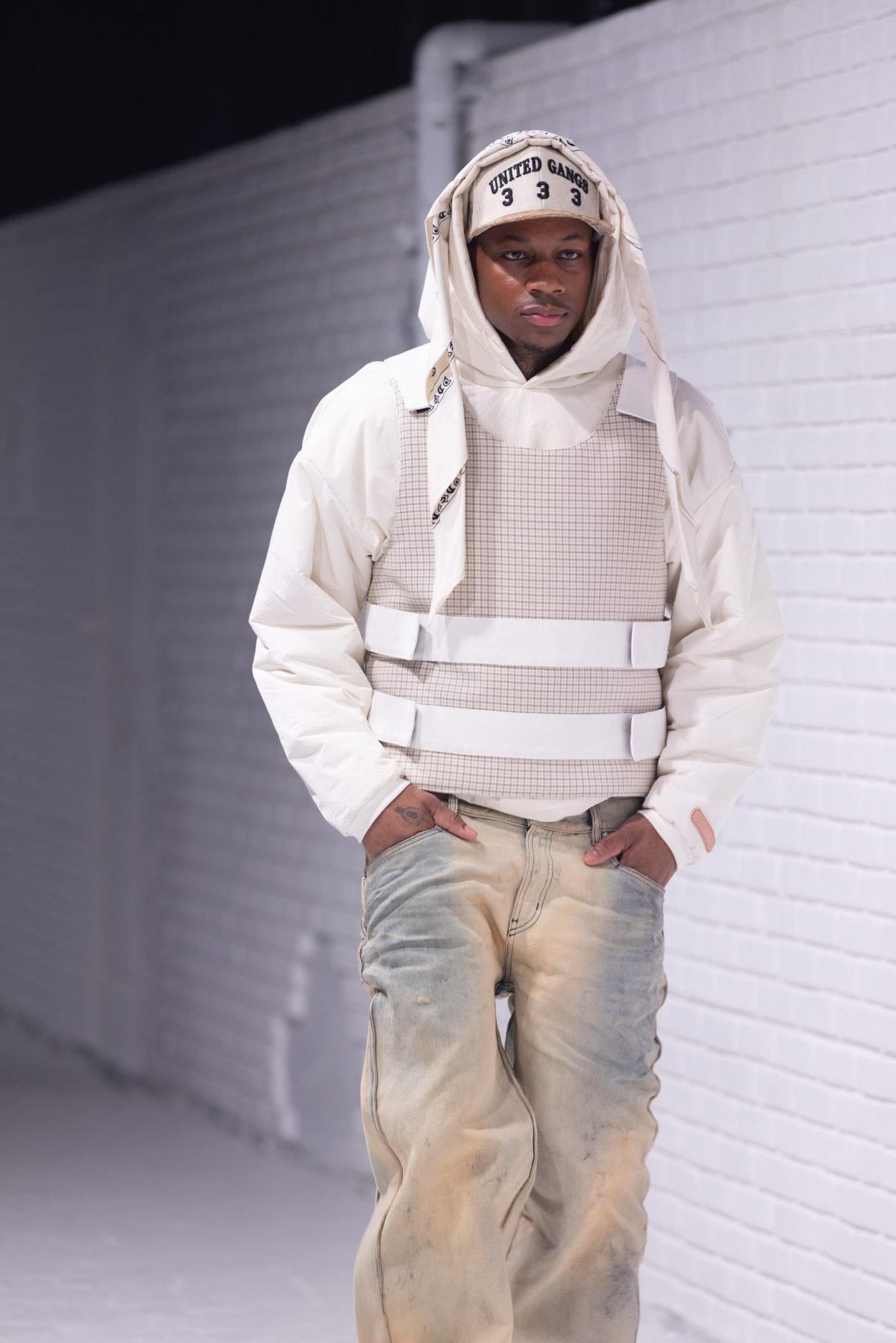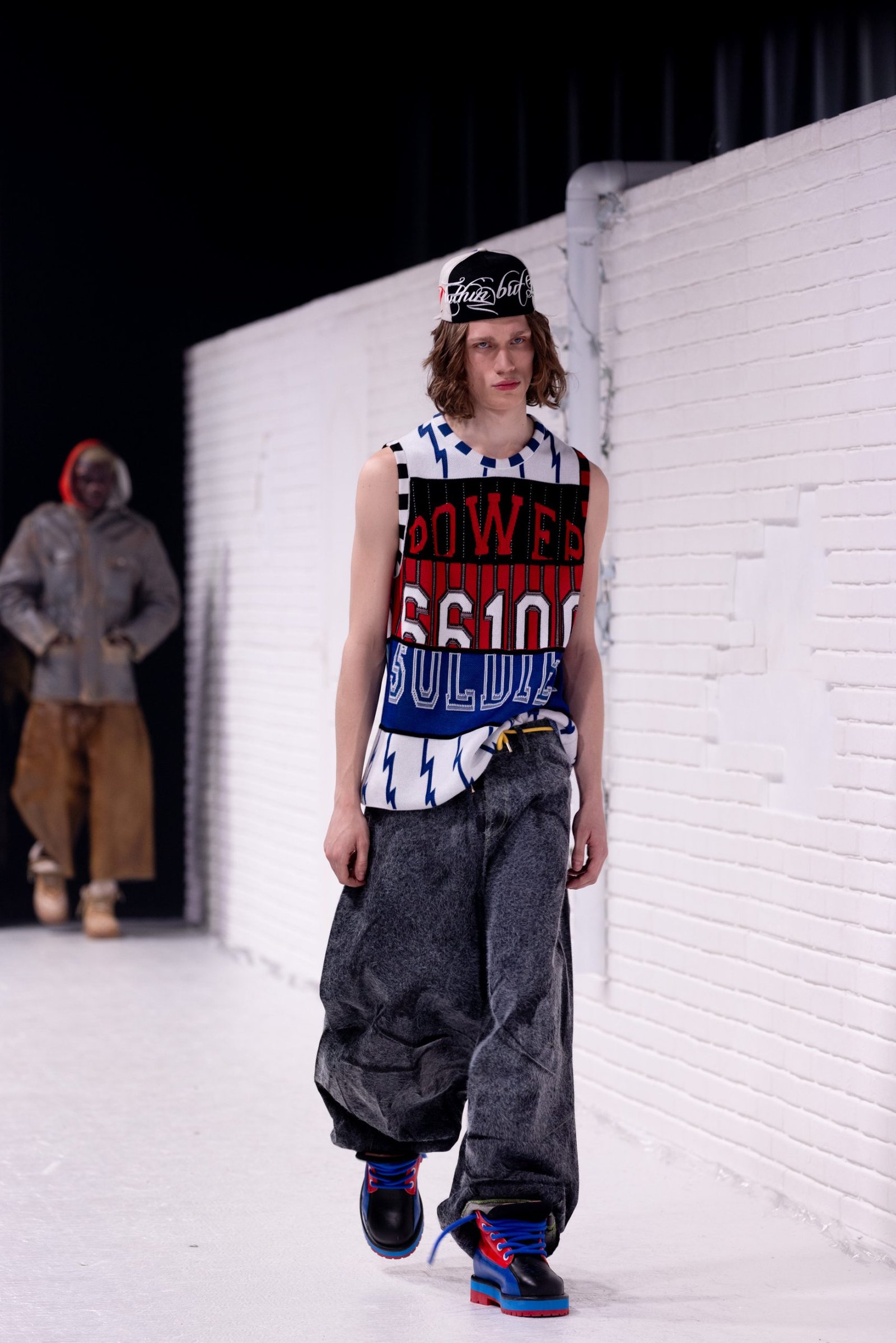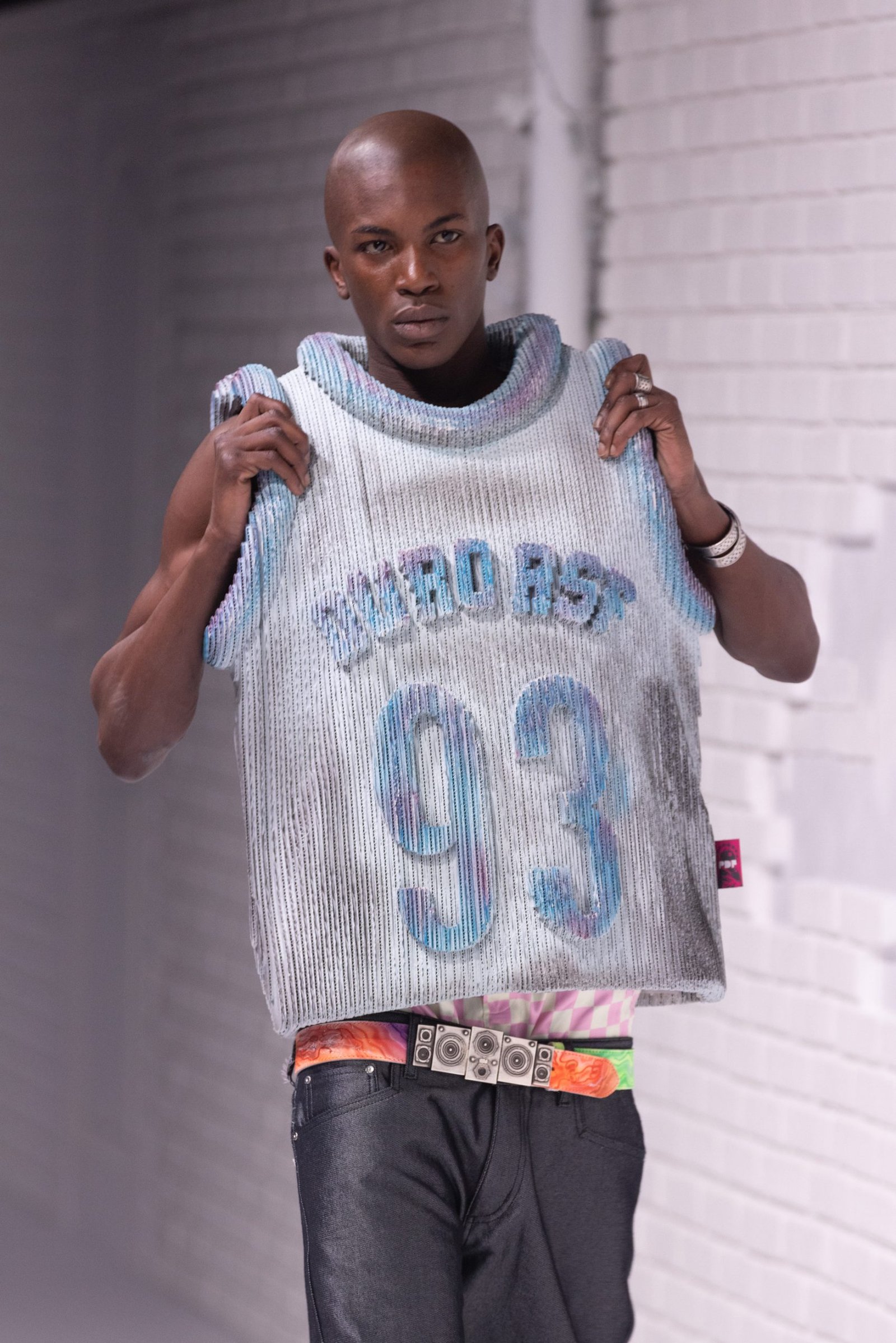 This season, Formichetti plunged into the gritty vibrancy of 90s and 2000s hip-hop, the golden age when music videos became urban mythology and style was an act of defiance. Drawing from films like Boyz n the Hood, Paid in Full, and Menace II Society, “United Jam” channels a world where oversized jerseys, Timberlands, and baggy denim were as much armor as aesthetic. These were garments that spoke volumes—of resilience, aspiration, and rebellion.