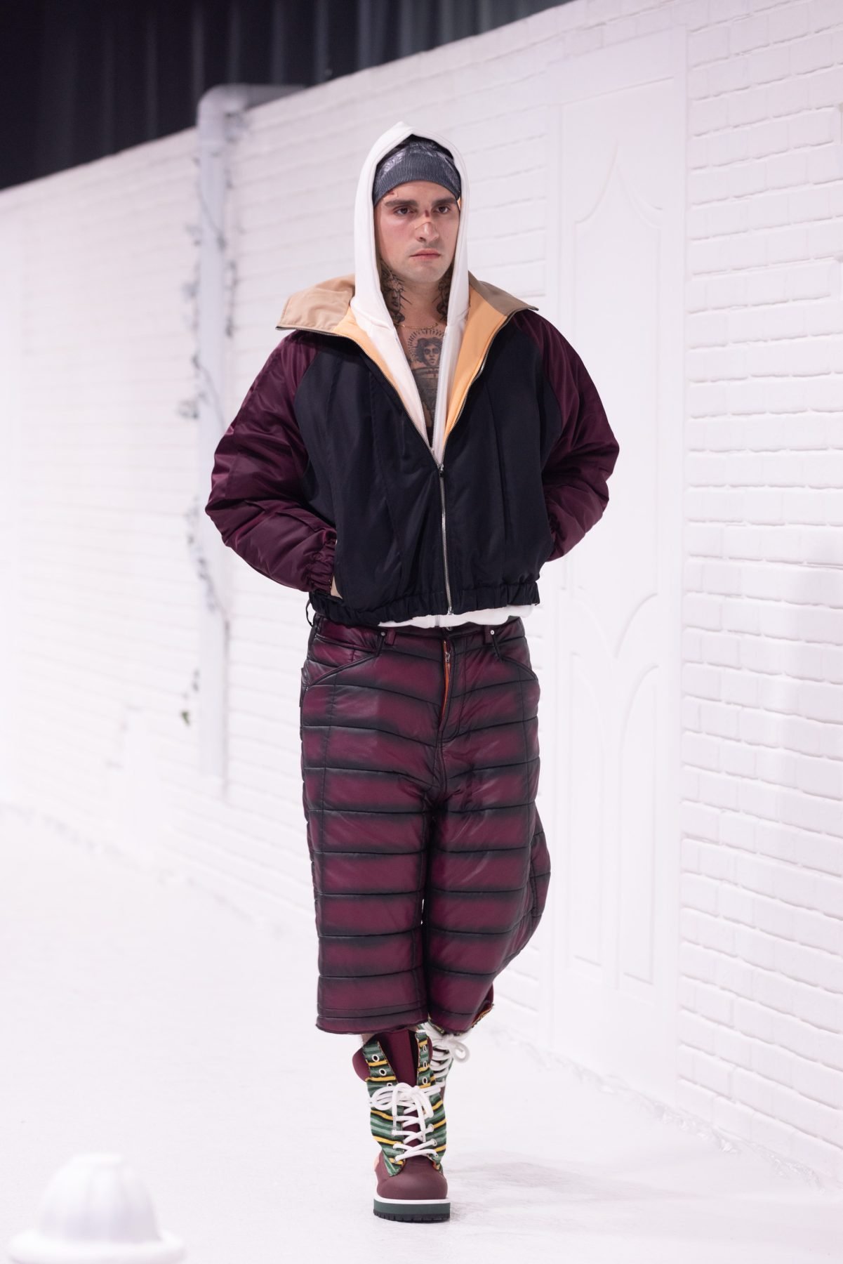 At its core, this collection is about hybridity,” says Formichetti. “It’s about how cultures collide—hip-hop and snowboarding, the streets and the mountains—and how those intersections create something entirely new. I wanted to design pieces that carry the energy of a music video but function like performance gear.”